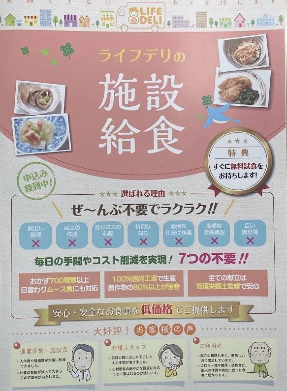 またご試食もできますので、施設様側はライフデリのサービスが自身のニーズに適しているかを確認できます!